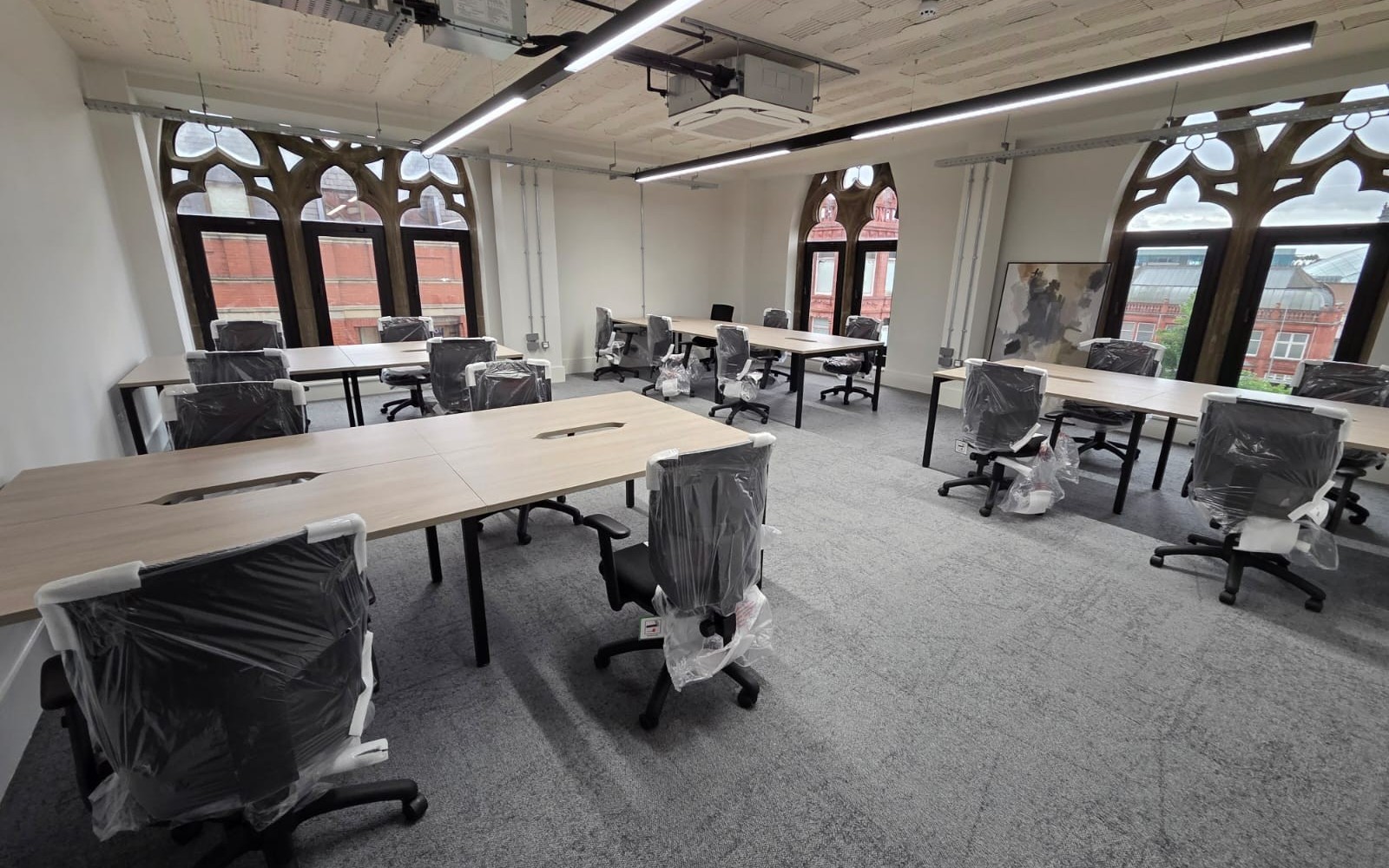 They had invested in a full redecoration and brand update across the site, and wanted to invest in more up to date furniture. That said, they also wanted to keep some existing furniture and match in with the new. We measured the spaces, made inventory of the existing items and re-drew the space to give more workspaces and a better flow around the main office.